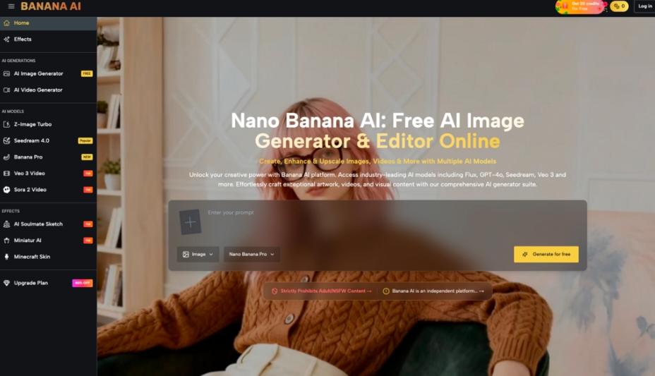 Banana AI Image positions itself as a free all-in-one AI image creator and editor: you can generate images from text and edit photos with AI, and it offers multiple models (it explicitly mentions access to Flux, Nano Banana, GPT-4o, and more). That’s enough to set expectations about what kind of workflow it wants to support—without pretending we can know anything about output quality, controls, speed, or reliability from a short description alone.