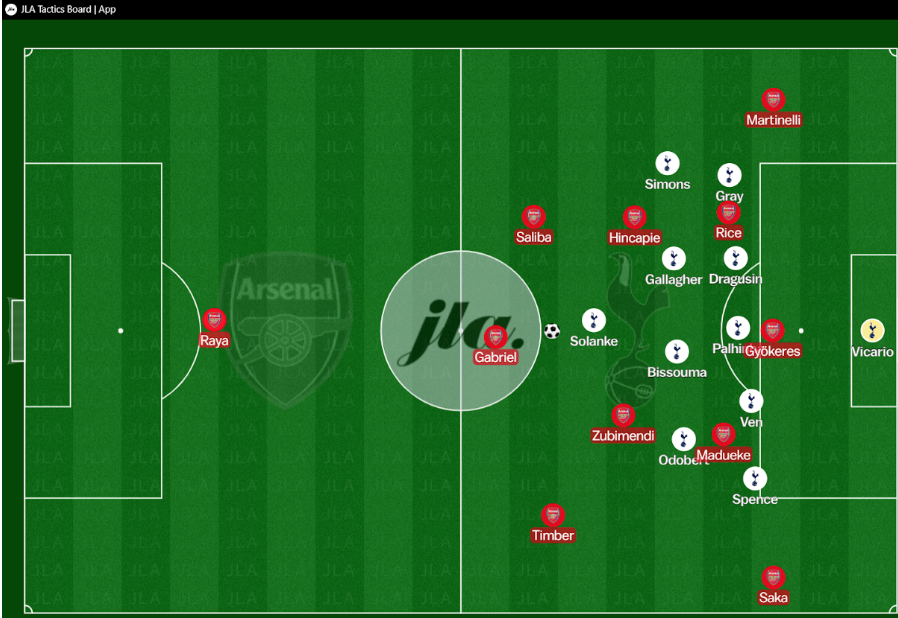 The key to Arsenal being able to break Spurs down will be moving the ball at a high tempo with plenty of incisive short passes and movement between the lines. Part of how this could be done would likely involve Gyokeres dropping off to link the play almost as a false nine sort of role whilst Zubimendi for example drifts into the space he vacates on the last line.